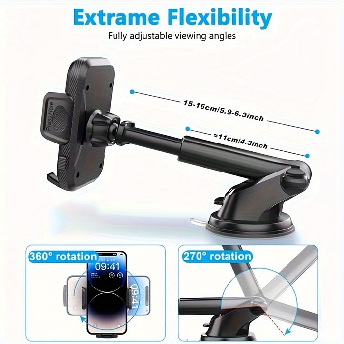 - Super Adhesive Dashboard Pad: Powerful suction with strong, high-temperature-resistant adhesion.