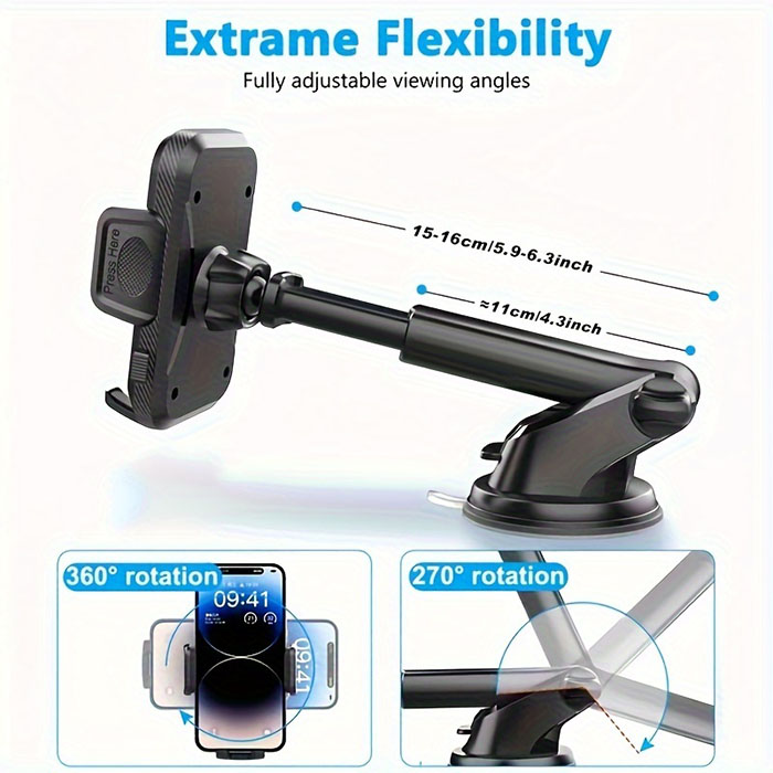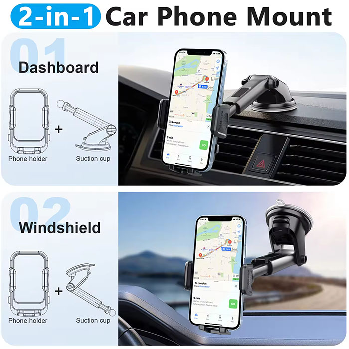 - 2-in-1 Mounting Options: Easily mount on the windshield, dashboard.